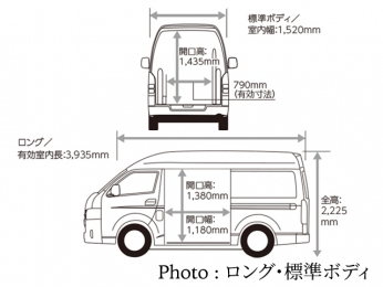 | ホイールベース | 3,110 mm | 室内(長・幅・高) | 4,475 / 1,695 / 1,530 mm |